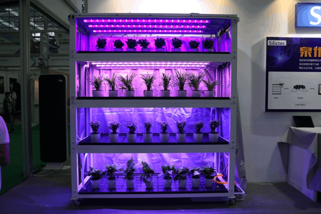 在思力科的展位可以看到一个奇特的现象,植物的生长,与四季无关、与地域无关、与太阳无关。完全利用人工光源替代太阳光,给植物光合作用需要的光源主要进行,环境温湿度、光照等智能环境控制和光营养及水肥体系的营养控制。这就是思力科成功研发的植物工厂项目,无需传统的种植条件和环境,通过调节光的配方,在一栋大楼里就可以种植蔬菜,甚至可以定制栽培,改变植物的“口感”。