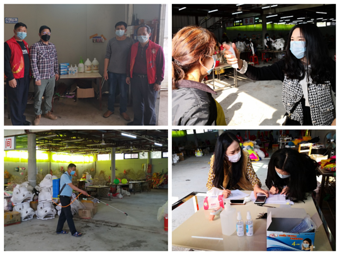 坚持多措并举,克服疫情影响。驻村工作队坚决贯彻落实习近平总书记重要指示精神,做到疫情防控和脱贫攻坚工作两手抓。全力助推扶贫企业复工复产,把疫情对脱贫攻坚的影响降到最低。在帮扶单位的关心支持下,驻村工作队筹集了口罩和消毒药水等防疫物资,解决扶贫车间在疫情防控方面的燃眉之急。指导做好日常防疫工作,鼓励工人将材料带回家中制作,减少因人群聚集带来的疫情感染风险。发动更多村民到醒狮公司务工,劝说村民不必外出打工,留在村中一样可以就业。虽然疫情影响使生产有所滞后,但我们相信,只要奋起直追,一定可以按时完成今年的生产计划,确保脱贫攻坚任务按时完成。