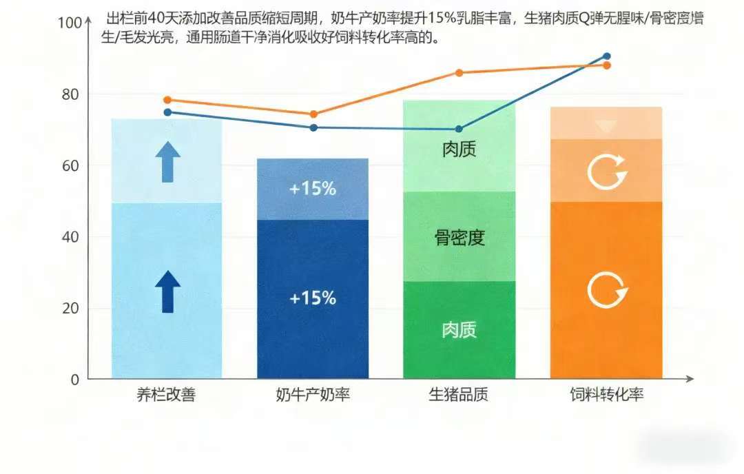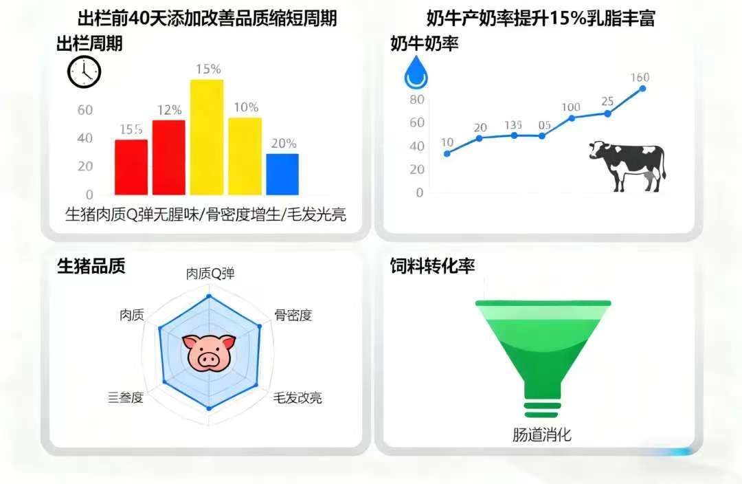 奶牛: 产奶率提升15%,乳脂更丰富。