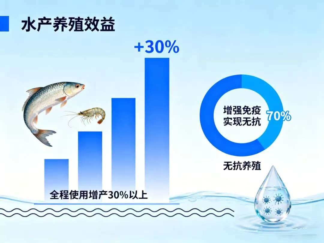 全程使用,可实现增产30%以上。鱼虾蟹活力强,成活率大幅提升。