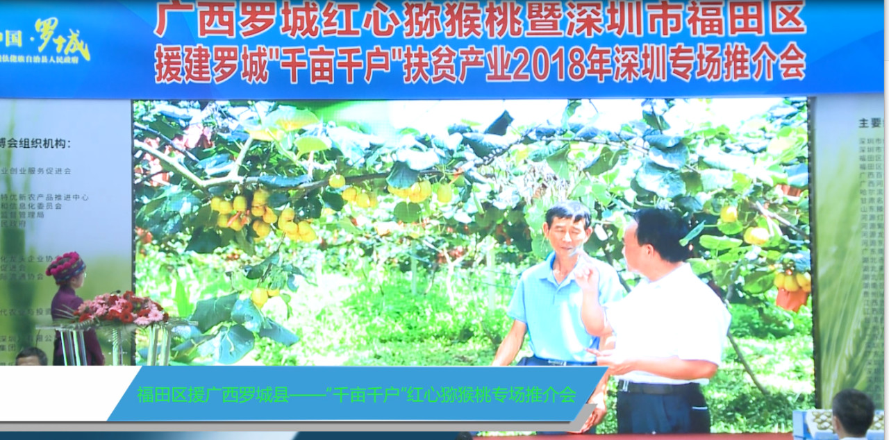 1、罗城县红心猕猴桃在深圳绿博会上通过举办“罗城红心猕猴桃暨深圳市福田区援建罗城“千亩千户”扶贫产业2018年深圳专场推介会”成功的将帮扶成果带回了深圳,回馈深圳市民。会上多家企业与罗城红心猕猴桃产业企业签订了采购协议,现场完成销售订单4800件,重量达12吨。