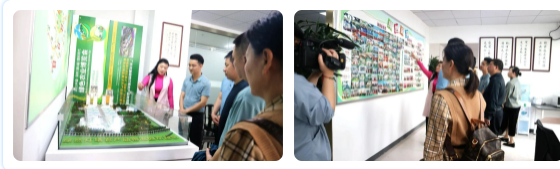 随后,考察团在黄总的陪同下一起观看绿然风采照片墙和河源绿然灯塔农产品物流园沙盘,深入了解了绿然灯塔农产品物流园的建设情况和功能分区。